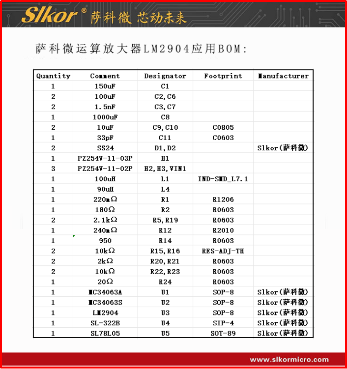 5.薩科微運算放大器LM2904應用BOM:
